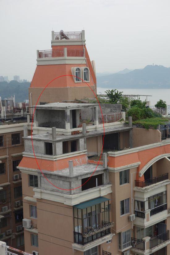 ????西江都市報訊(記者 龍天傳) 近日,有家住藍天港灣小區的居民向記者報料稱,其小區內多處住宅樓的樓頂出現違法建筑,有的甚至加建兩三層,引發了不少居民對樓體安全的擔心。10月7日,記者到該小區走訪。