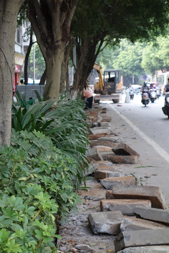 ????國(guó)慶節(jié)休假回來(lái),市民們?cè)俣嚷皆谖嘀荽蠼郑l(fā)現(xiàn)步埠路、大學(xué)路一帶變了,沿途人行道正在開(kāi)挖,花池的水泥板也被撬開(kāi),旁邊堆放著待替換的光滑花崗巖板磚,原本的地磚被鉤機(jī)清理上車(chē)運(yùn)走。“道路為何又開(kāi)挖了?”市民李先生國(guó)慶節(jié)去了一趟南寧,回來(lái)之后看到道路開(kāi)挖,這讓他無(wú)法理解。
