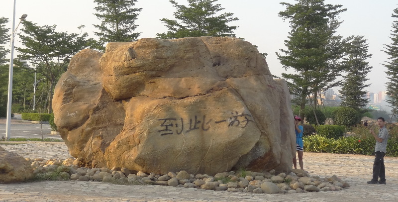 ??? 近日,位于蒼海公園西北入口處一塊景觀石被人噴涂“到此一游”的字樣。市民呼吁,大家進入公園游玩應增強文明意識,自覺維護公園設施。 黃東榮 攝
