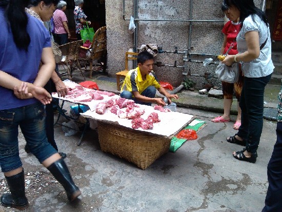 而與這份熱鬧相對應(yīng)的,是市場內(nèi)部的冷清。由于大部分的客源都被市場外圍的攤販所截流,因此市場里很多經(jīng)營者的生意淡了許多。看到記者前來詢問,在市場內(nèi)經(jīng)營的個(gè)體戶陳女士大吐苦水:“以前一天能賣兩頭豬,現(xiàn)在一頭都賣不完。”而經(jīng)營熟食的黃先生也抱怨道:“生意難做先不說,每個(gè)月的各類檢查都盯著市場內(nèi)部來進(jìn)行,為什么不整治一下外面的情況呢?”