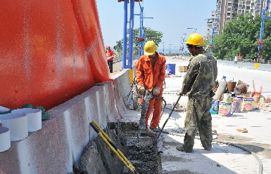 ????據悉,翻新后的鴛江大橋路面將更加平整,橋上的兩道“彩虹”刷上了新漆,行車道兩旁也增加了花壇。同時施工單位提醒市民,由于混凝土路面新鋪上不久,橋面比較滑,司機要遵守交通規則,嚴格把車速控制在限定范圍內,防止發生交通事故。 |