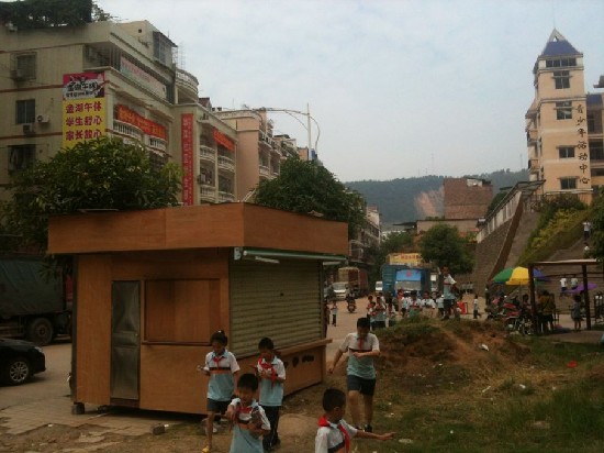 ????10月10日,記者到新興二路小學附近走訪,發現的確有一個類似書報亭的搭建物擋在人行道上,將本就狹窄的人行道幾乎全部擋住。當時正是放學時間,只見搭建物旁停滿接送孩子的車輛,很多小學生為躲避路上的車輛,都選擇從搭建物旁的小土坡上經過。記者還看見一名低年級的小學生從土坡頂跳下來摔倒,該小學生站起來拍拍身上的泥土,笑著說,“我天天都從這個坡上跳下來。”記者在新興二路小學門前觀察了20分鐘,看到小學生們只要不過馬路的,多數會從搭建物旁的小土坡繞行通過。