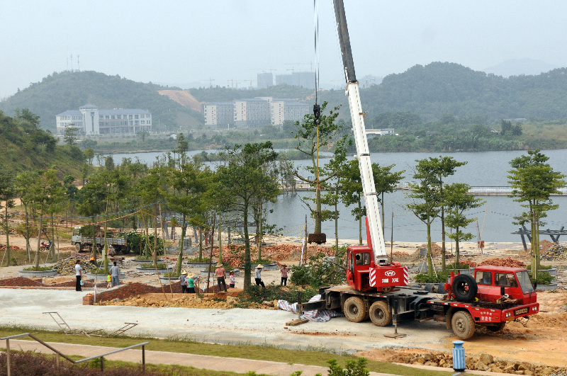 ??? 10月16日,綠化工人在玫瑰湖畔植上大株的木棉樹。當(dāng)天,除了木棉樹外,園林綠化部門還在玫瑰湖公園植上了大王椰及其他的景觀樹木,公園的綠化得到進(jìn)一步完善。 西江都市報記者 蒙紹松/攝