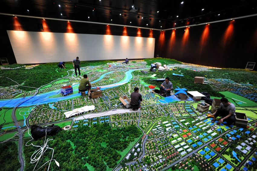 10月25日,工人在安裝梧州城市規劃沙盤。當日,記者在位于梧州市城市規劃展覽館二樓的梧州市總體規劃沙盤展示廳了解到,沙盤的制作進入最后的收尾階段。據悉,該沙盤面積586平方米,按1200:1比例制作,建成后可配合沙盤背后22米寬的高清投影屏一起,通過聲、光、電效果向游客展示梧州未來的發展規劃布局。 西江都市報記者 何鎏/攝