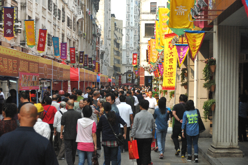 10月31日,嶺南美食節(jié)開幕當天,騎樓城中的特色小吃街人流如織。 西江都市報記者 蒙紹松/攝