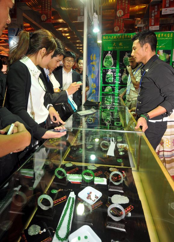 緬甸客商展銷的緬甸玉飾品廣受關(guān)注。