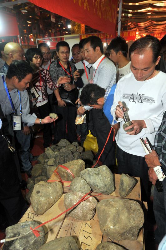 市民在鑒別玉石原石。