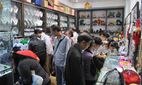 ????11月2日,人們正在寶石城選購珠寶飾品。