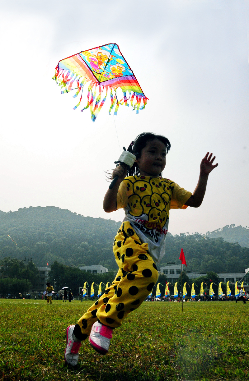 ????“媽媽,你看,風箏飛得可高了!”在母親的指導下,6歲的梁恩源成功放飛了手中的風箏,開心之情溢于言表,而他們的風箏也一下子成為大家眼中的焦點。只見30個描繪著“北京歡迎你”吉祥物圖案的迷你型風箏由絲線串聯著,在風力的作用下搖頭擺尾,自放飛起就成為不少攝影愛好者爭相拍攝的對象。其母親石少容告訴記者,這只特別的風箏是今年5月全家到北京旅游時所買,但一直沒機會試放,得知當天舉辦風箏大賽,她特意叫上兒子,帶上風箏,出門感受放風箏的樂趣。