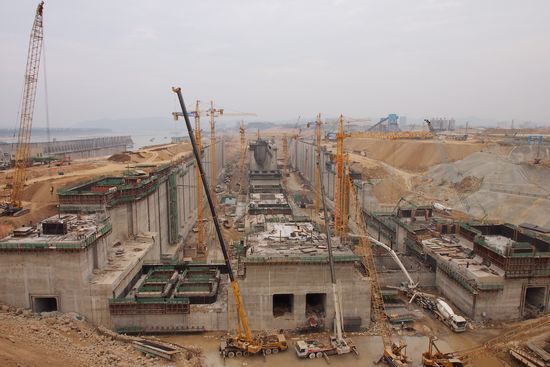 長洲水利樞紐三線四線船閘工程建設(shè)現(xiàn)場。楊苑君/攝