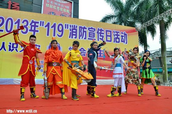 ??? 西江都市報(bào)訊 (見習(xí)記者 岑霖?zé)?通訊員 李研銘) 在全國第23個(gè)消防宣傳日來臨之際,主題為“認(rèn)識(shí)火災(zāi),學(xué)會(huì)逃生”的梧州市2013年“119”消防宣傳日活動(dòng)于11月5日上午在鴛江麗港中心廣場舉行。活動(dòng)由“消防七劍”cosplay表演、“認(rèn)識(shí)火災(zāi),學(xué)會(huì)逃生”消防闖關(guān)賽以及“消防七劍”現(xiàn)場宣傳活動(dòng)、裝備器材展示等部分組成。