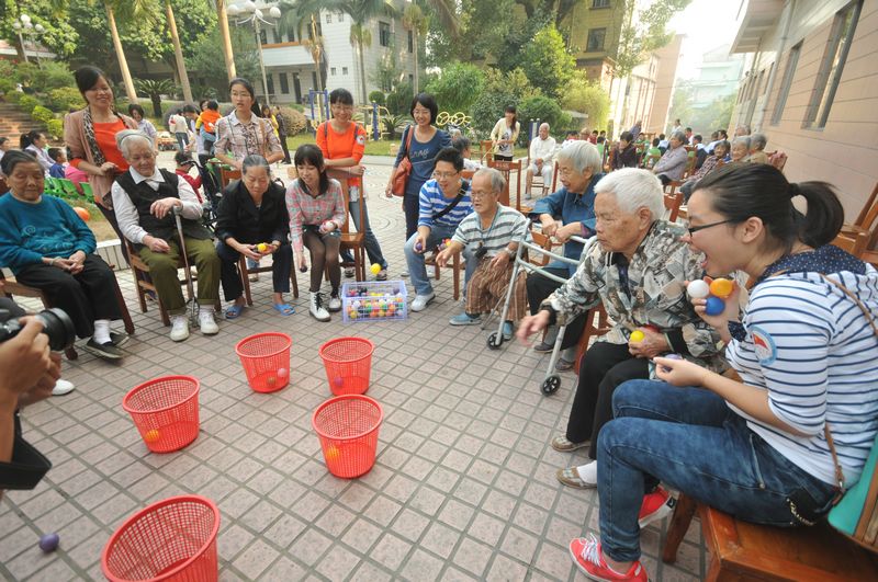 雖然只是簡單的互動游戲,老人們已經很開心。
