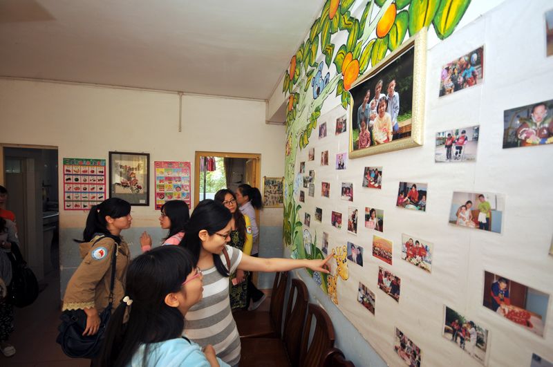 愛心家庭的全家福照片紀念墻吸引了大家的注意。