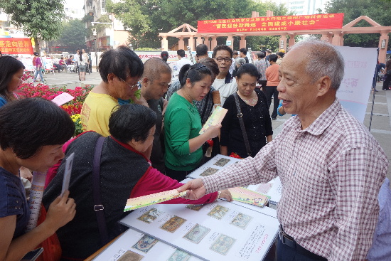 ????一大早,各個參加活動的單位便積極在潘塘公園廣場擺攤設點,現場派發宣傳資料,一一解答市民提出的問題。據了解,本次社科知識普及活動涉及面廣,有集郵文化、錢幣文化、六堡茶文化以及金沙玉文化等一系列知識。通過工作人員與市民近距離接觸,達到進一步提升市民自身科學素質,擴大市民社會科學知識面的目的。