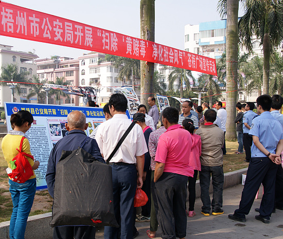 梧州零距離網訊(通訊員 曾亮 歐陽燦)11月9日,梧州市公安局組織民警在龍圩鎮開展“掃除‘黃賭毒’凈化社會風氣”廣場宣傳活動。