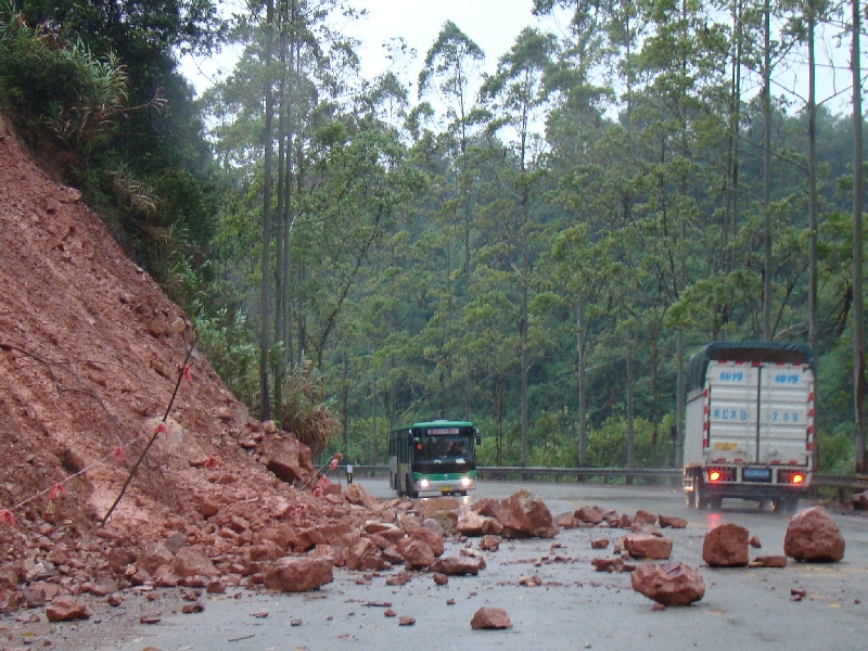 ????受到臺風“海燕”外圍環流的影響,蒙山縣連續降雨一晝夜,國道321線蒙山縣新圩峽路段出現塌方,并在雨中不斷擴大。當地公路管理部門及時拉起警示線,并組織力量搶修,確保國道暢通。 江永錄 傅創華 攝