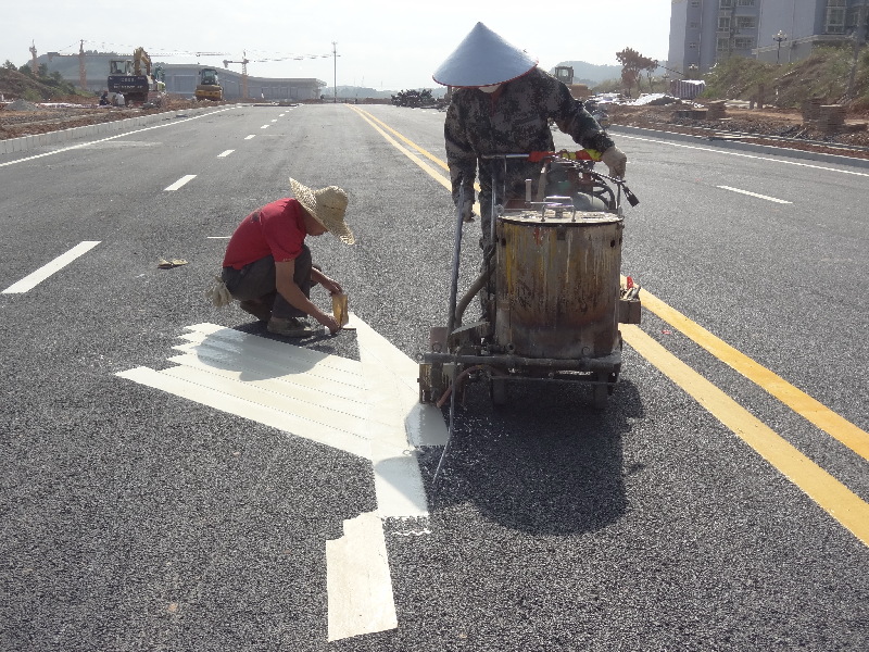 ????11月26日,工人正在南廣鐵路梧州站進(jìn)站大道上施劃交通標(biāo)線。