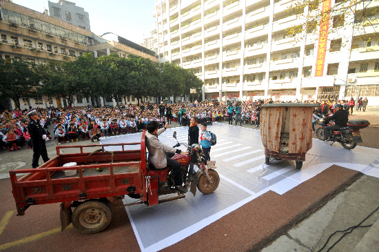 ????小品《安全回家》中,常見的摩托車、電動三輪車以及載貨三輪車開進了校園,以實物做道具的真實感讓師生們身臨其境。振興小學校長龍玲指出,日常生活中一些學生存在隨便穿越馬路等不遵守交通規則的現象,或者放學時乘坐非法營運的車輛,希望通過交通宣傳日活動教導學生養成文明安全出行的習慣。