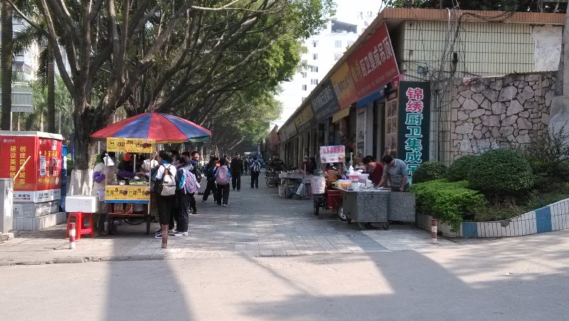 ????記者觀察發(fā)現(xiàn),這些小吃攤檔缺少必要的防塵設(shè)備露天售賣食品,其衛(wèi)生狀況令人擔憂。許多家長表示,希望有關(guān)部門采取措施加大對學(xué)校周邊環(huán)境的整治和凈化力度。祝琳 攝