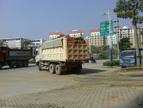 位于新興二路與新聞路交匯處的一施工工地,部分運輸車既沒有車廂擋板,也沒有加蓋篷布,沿路傾灑不少泥土與沙礫,附近一些商鋪只好潑水降塵。在云龍橋頭、西堤三路一帶的建筑工地,對運輸車輛的管理較為規范,車輛均加裝了車廂擋板,沖洗了車輪、車身后才開出工地。盡管如此,車輛駛出道路后仍會撒落一些泥土,揚起不少的灰塵。