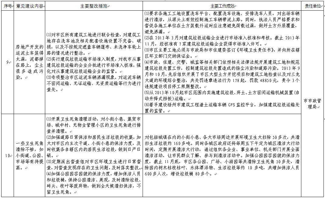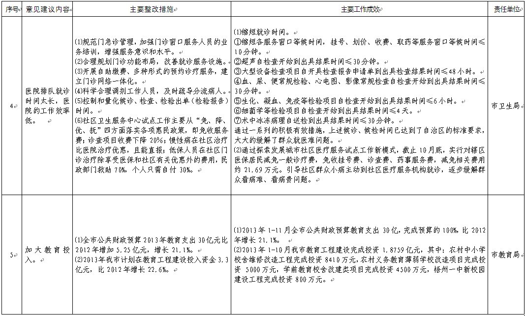 梧州市2012年度自治區績效考評公眾評議意見建議整改落實情況