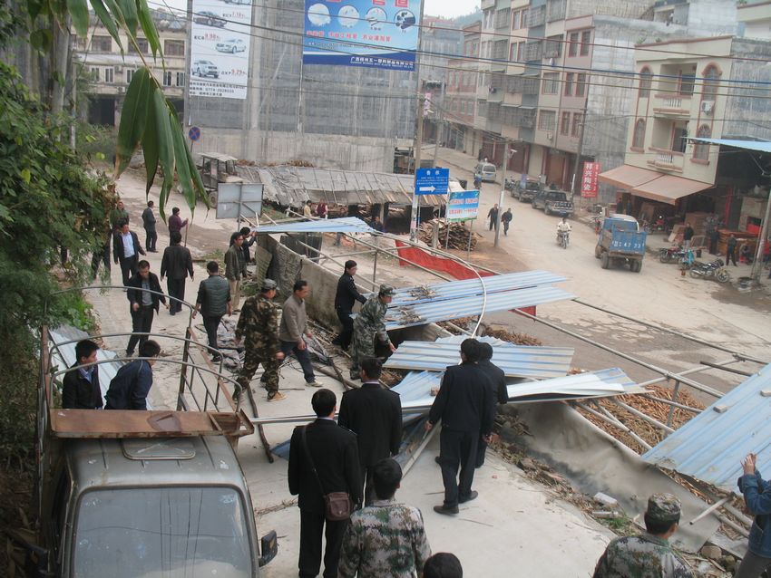 ?12月12日,藤縣埌南鎮黨委、人大、政府組成的聯合執法組,清理亂搭亂建、亂擺亂賣、亂堆亂放的物品。