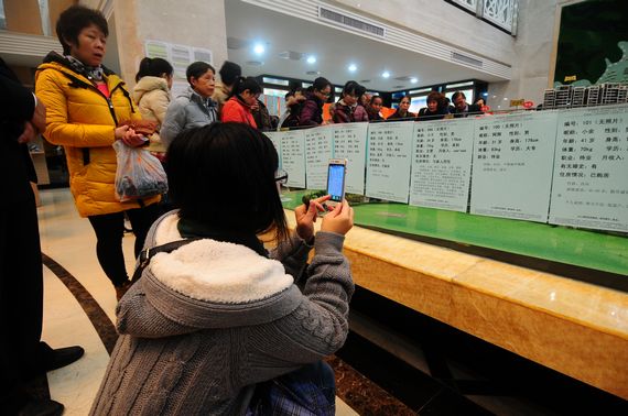 家長們拿出子女的照片,為孩子們尋找心上人。
