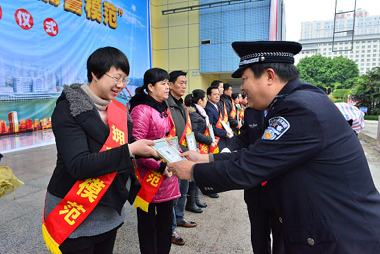12月15日上午,我市公安局十大“愛民標兵”、十大“擁警模范”頒獎儀式在市政府廣場舉行。梁觀遠 攝