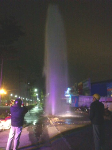 梧州零距離網(wǎng)訊(通訊員 黃浩)12月17日晚上19時(shí)許,長洲區(qū)三龍大道梧州高中新校區(qū)對面路段,出現(xiàn)了一股三十米高的“噴泉”,引來群眾圍觀和拍照,但這一“噴泉”可不是建筑景觀,而是人為所致。