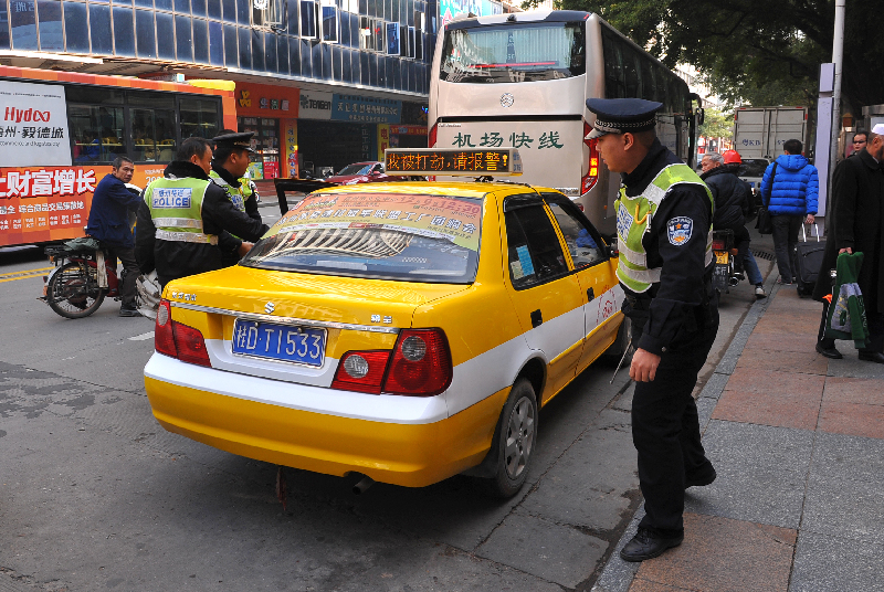 ????擔心會有罪案發生,記者馬上用手機撥打110報警并駕車跟隨這輛出租車。該出租車沿文瀾路經西堤一路上了鴛江大橋,到達河東白云酒店對面人行道后停車,坐在副駕駛座上的乘客在此下車。當出租車正要再次起步時,被趕到的特巡警執勤車輛堵截。