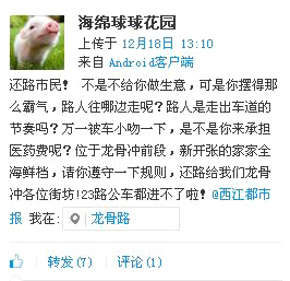 網友反映在龍骨路一家新開張不久的大排檔占道經營,行人無法從人行道通行。 (來自新浪微博)