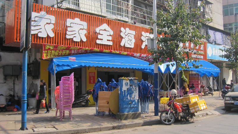 ????12月25日,網友向本報反映,該大排檔仍在占道經營,并且準備將臨時式帳篷改裝成為固定在店鋪外墻上的帳篷。當天中午,記者來到現場。此時,在該大排檔門前,一名工人正在整理帳篷。而在旁邊的人行道上,則擺有近10頂未撐開的帳篷及桌椅等物品,使得行人經過時需要小心繞開。大排檔的工人正在整理的帳篷確實并不是一般餐館所用的滑輪傘狀帳篷,而是可以伸縮的新型帳篷。這種帳篷的一端安裝在餐館外墻門框上,使用時,只需把帳篷另外一端的支架移出,就可以完成大面積覆蓋,不用時則可把支架移回去緊貼大門。
