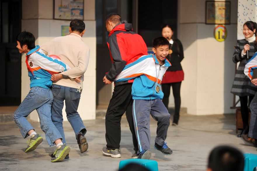 ?12月27日,梧州市第二實驗小學學生在雙語藝術周上,與家長一起做游戲。當日,梧州市第二實驗小學第六屆雙語藝術周活動進入最后一天,在連續多天的活動中,全校師生分年級穿插進行雙語手抄報、藝術匯演、親子游戲、集體舞蹈等多種活動,在活動中鍛煉學生的英語聽說讀寫能力,取得良好效果。