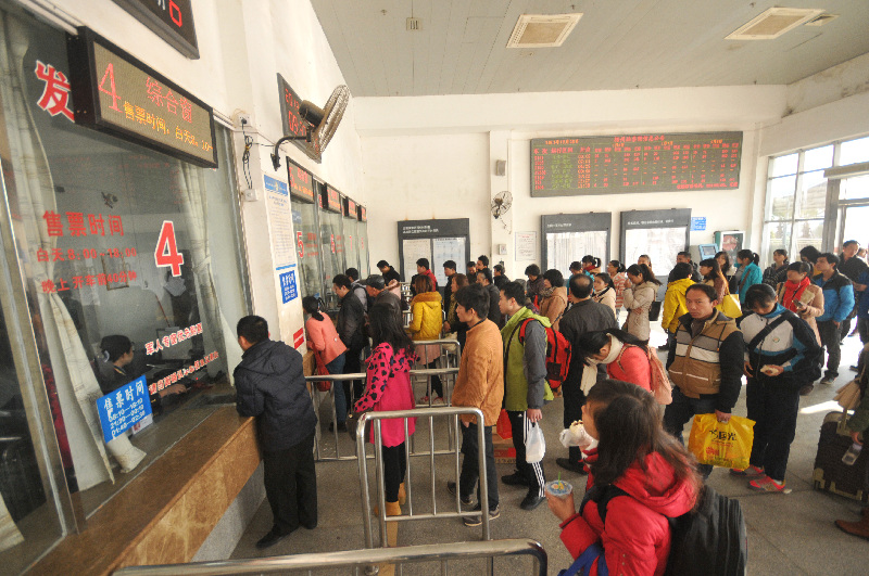 ??? 12月28日,乘客在梧州火車站排隊買票。當天,2014年春運火車票開始全國發售,梧州火車站售票情況與平時大致相當。 西江都市報記者 蒙紹松/攝