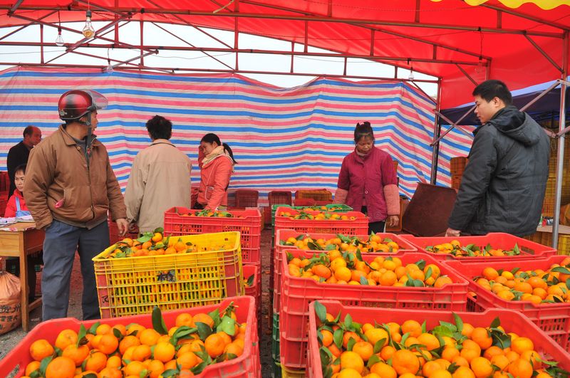 ?1月3日,在竹灣同舟農產品綜合市場水果行,人們正挑選、購買砂糖橘。