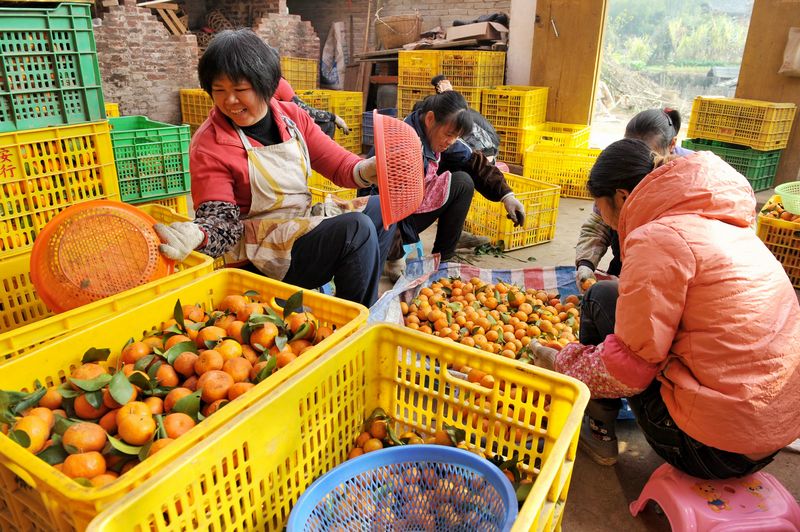 ?1月3日,在蒼梧縣木雙鎮,農民工正分揀剛采摘的砂糖橘。目前,該鎮1880畝砂糖橘大部分已成熟并開始收獲,畝產1000公斤以上且果品質量好。現在,有不少客商到鎮里收購,種植戶們請當地農民幫工,加快進行摘果、分揀、包裝、裝車等工作。 孟亞西 攝