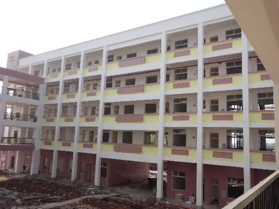 ????位于紅嶺新區的紅嶺小學初現雛形。紅嶺小學已建成一棟五層普通教學樓和一棟五層綜合教學樓,教學樓總面積5104平方米,可容納30個教學班、1350名學生,將于2014年春季學期投入使用。 祝琳 攝