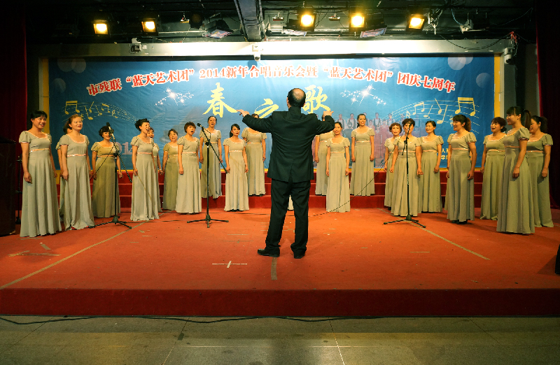 ????1月6日晚,梧州市殘聯“藍天藝術團”在梧州學院實驗樓報告廳舉行2014年新年合唱音樂會,以混聲合唱、男女聲合唱、獨唱獨奏等演唱形式慶祝團慶七周年。