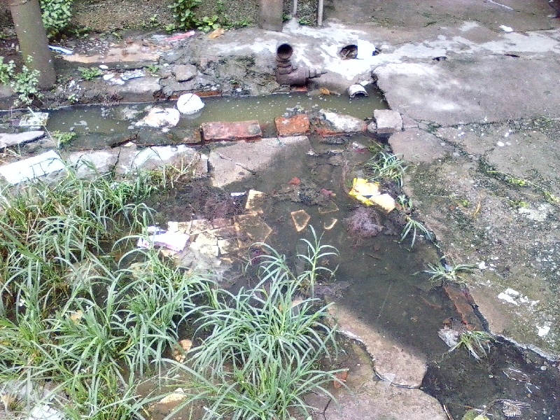 ????2013年11月12日,銀湖南路樓座茶餐廳附近的下水道堵塞已有一個多月,導致污水橫流。