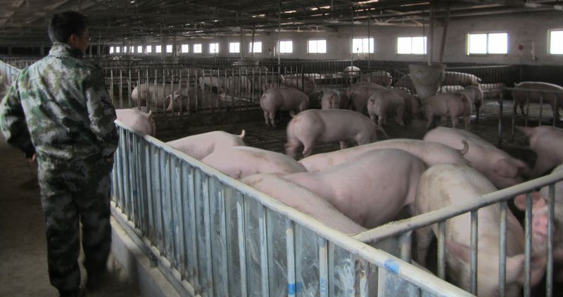 1月8日,在蒼梧縣沙頭鎮橫江村一個自動化養豬場,工作人員在巡查豬舍。
