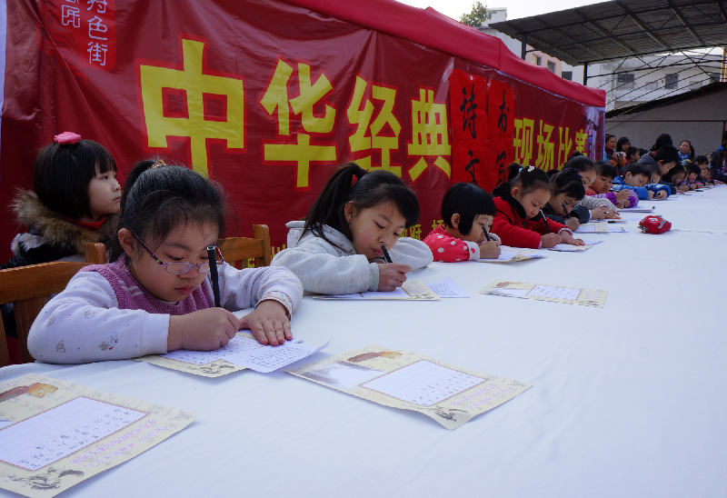 ????1月18日上午,在梧州市富民特色街小廣場,來自市內(nèi)多所學(xué)校的120多名中小學(xué)生正在進(jìn)行“中華經(jīng)典 詩文書寫現(xiàn)場比賽”。當(dāng)日,由萬秀區(qū)政府、梧州市社科聯(lián)主辦,梧州市金沙玉文化協(xié)會和硬筆書法協(xié)會協(xié)辦的梧州市首屆金沙玉文化活動舉行。據(jù)主辦方介紹,在為期兩天的活動中,除書法比賽之外,同時還舉辦“古錢幣收藏與辨?zhèn)巍薄⒂袷幕杏憽⒌窨坦に嚨任幕顒印?西江都市報記者 陳健新 攝 |