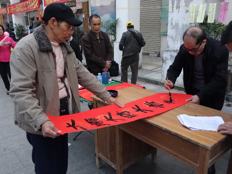 ????1月18日,在桂北社區,書法愛好者義務為居民書寫春聯。