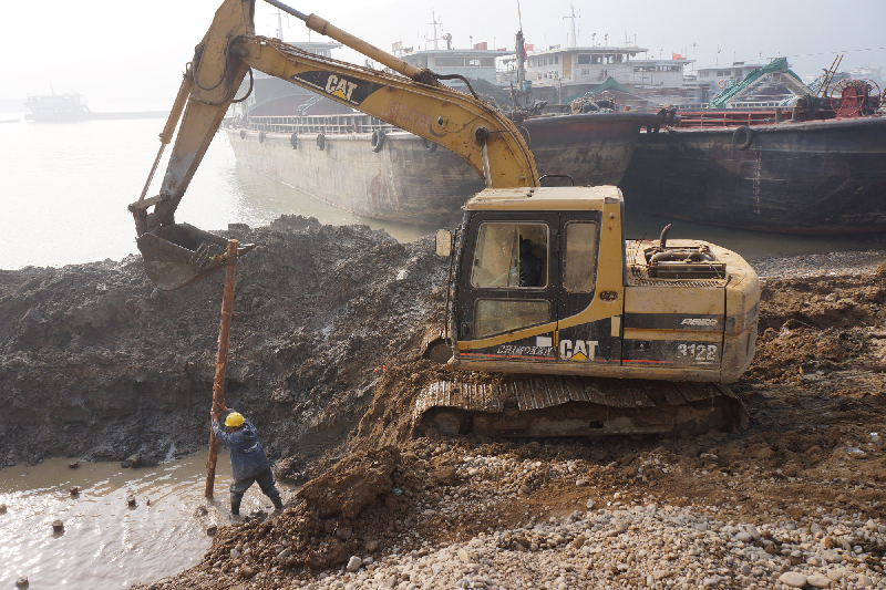 ????1月19日,位于下關泵站至云龍大橋的西江左岸段,施工人員正在挖泥整坡,對河東防洪堤護岸第一標段進行整治施工。