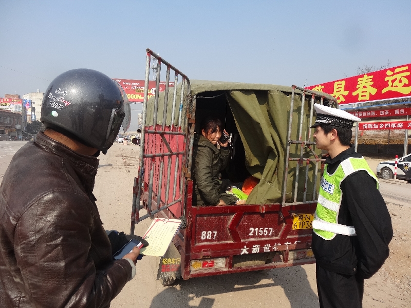 ????1月22日早上,藤縣交警在對違規用小貨車載人且長途行駛的莫×進行批評教育。