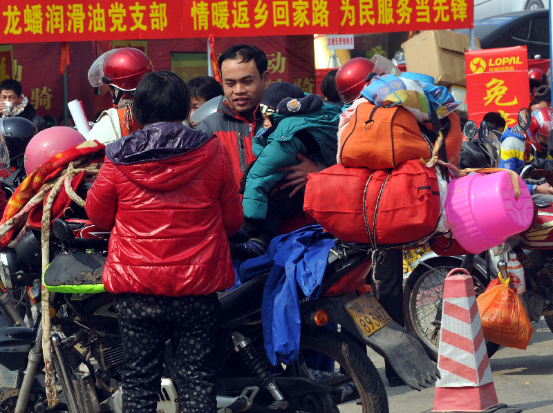 ????車背上滿滿的各種行囊成為返鄉摩托車大軍的顯著特點。