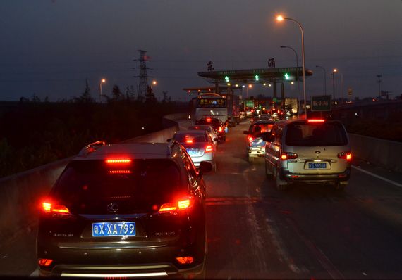 1月20日18時30分,廣州南沙區東涌收費站前排起的車龍,讓人感到春運的氣息撲面而來。