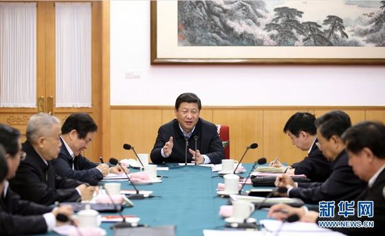 ?12月9日,中共中央總書記、國家主席、中央軍委主席習近平在中南海聽取河北省委黨的群眾路線教育實踐活動總體情況匯報。 新華社記者蘭紅光 攝