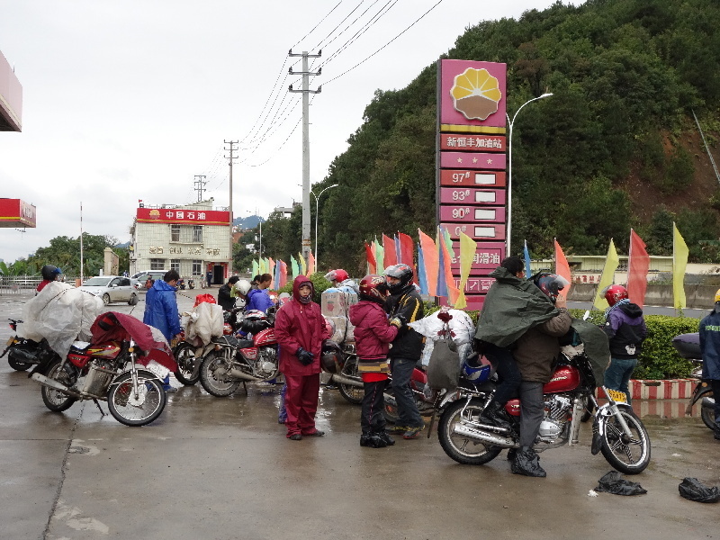 2月9日,在梧封一級公路的中石油新恒豐加油站,大批駕摩托車返程務工者進站休息。 祝琳 攝