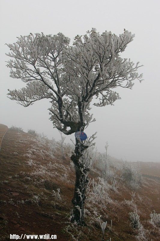 ????冰掛晶瑩剔透、銀堆玉砌,一串串、一條條落在樹枝上仿似龍須,依附在小草上有如白色精靈,給前來游玩的客人增添了不少樂趣。據(jù)岑溪市旅游局局長覃錫進介紹,在冷空氣的影響下,岑溪天龍頂山地公園由于地處郊野,氣候濕潤,加上海拔高,因此出現(xiàn)了冰掛現(xiàn)象?!坝捎跉鉁氐停壳笆侨毡3直鶔?。根據(jù)氣象預(yù)報,此次冰掛現(xiàn)象將持續(xù)到本周周末?!绷钊梭@喜的是,受北風影響,公園內(nèi)觀光區(qū)域僅北面形成冰掛,而南面還是一片樹林風景。