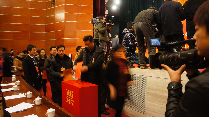 代表們通過無記名投票選舉人大常委會主任、副主任、委員及中級人民法院院長。鄭玉華攝